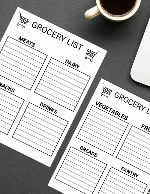 Grocery shopping list bold large print digital download printable