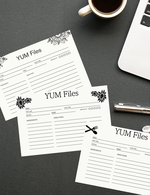Recipe cards digital printable downloads sunflower Yum files